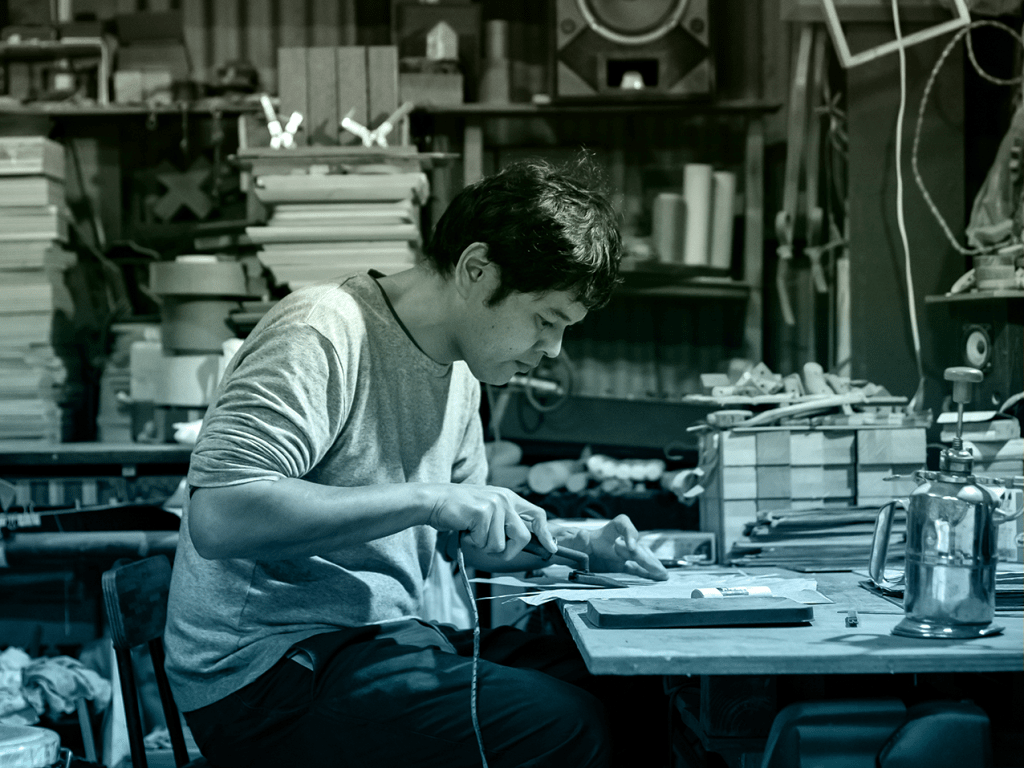 デザインを手がけたのは、徳島を拠点とする藍師・染師BUAISOU(ブアイソウ)。藍の栽培から染料の製造、製品の制作に至るまで、すべてを一貫して行うその姿勢は、伝統への深い敬意と職人技へのこだわりを体現しています。素材には、徳島県上勝町の間伐材である杉から生まれた繊維を用いたKINOFの生地を使用。環境への配慮と革新性が融合した、まさに持続可能な未来を見据えた素材です。